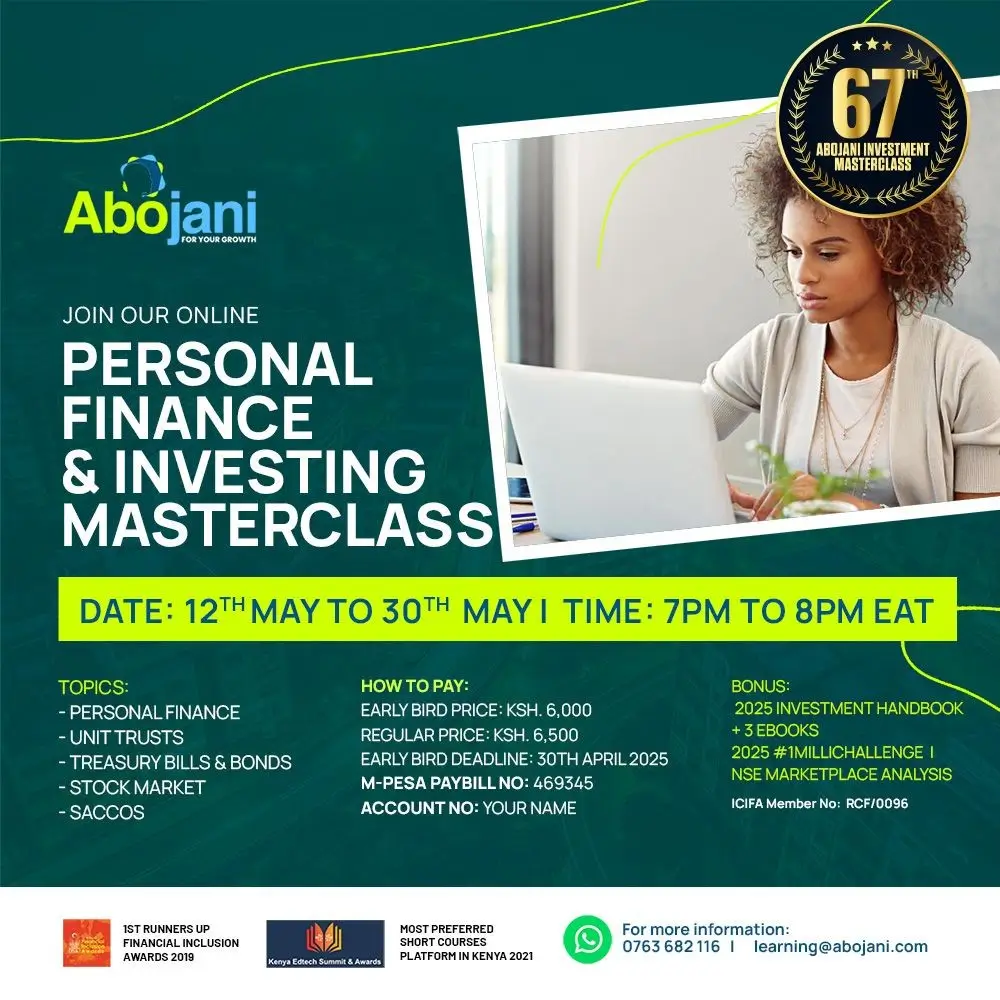 Abojani’s online masterclass on personal finance and investing begins on May 12th.