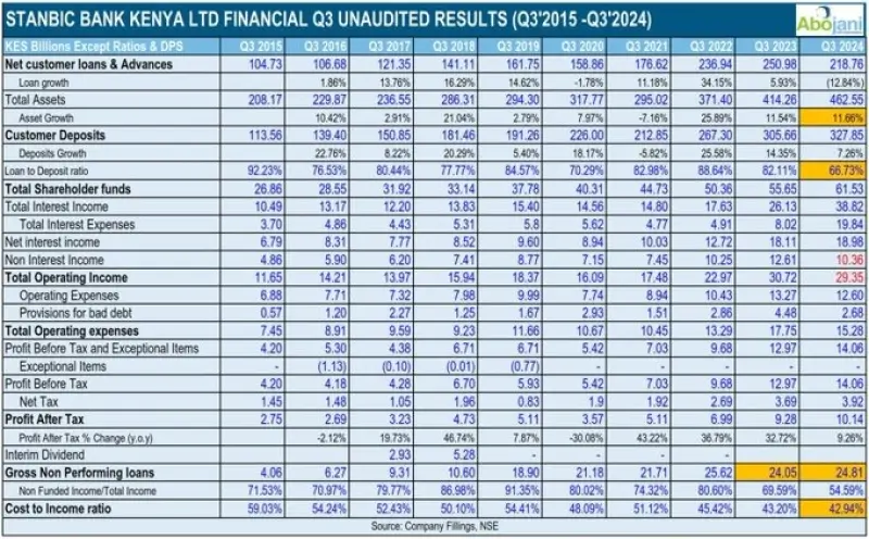 6. Stanbic Bank Kenya recorded a strong performance in Q3 2024, with a 9.26% increase in profit after tax, reaching Ksh 10.14 billion…